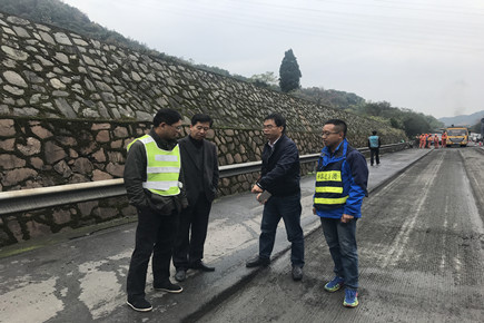 圖為市公路局副局長童桂正一行在現(xiàn)場指導