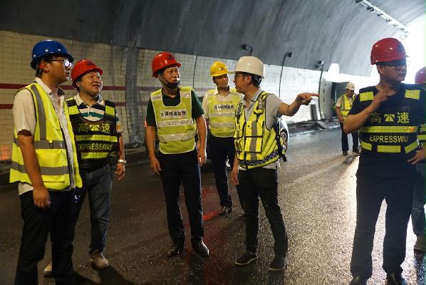 圖為驗(yàn)收小組正在對(duì)隧道進(jìn)行初步驗(yàn)收