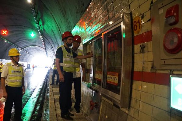 驗(yàn)收小組人員佩戴安全帽,身著反光背心,從寧向隧道北洞口開始,以徒步方式開展驗(yàn)收。每次途經(jīng)改建之地,他們便仔細(xì)檢測(cè),著重對(duì)機(jī)電設(shè)備安裝調(diào)試效果、消防設(shè)施配備、緊急電話安裝、蓋板更換、瓷磚修復(fù)及清洗情況等進(jìn)行仔細(xì)排查驗(yàn)收。