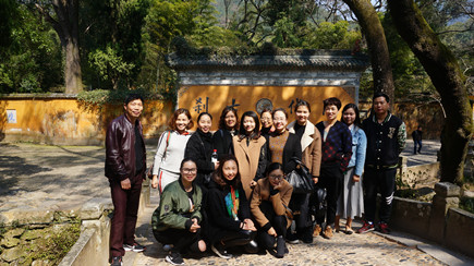 圖為第一批參加人員在瓊臺仙谷合影 上午9點30分,三個所共計40多位員工在集團公司下屬的旅行社導游小孫的帶領下,從臨海結集出發,去往“人與自然和合、人與人和合、人與社會和合”的“和合圣地”——天臺,游覽國清寺和瓊臺仙谷?!昂秃衔幕笔翘炫_山文化的精華,也是中華傳統文化的核心與精髓。近年來,臺州市大力推進“和合文化”品牌建設,全力打造“和合圣地”,賦予“和合文化”新的生命力。大家深處由秀美的自然山水和內涵極豐富的佛道文化構成的天臺山美景中,享受著自在與輕松,整個活動過程更洋溢著“健康、和諧、友好、愉悅”的濃厚氛圍。 此次“一日游”活動,不僅激發了女員工們積極向上、自強不息的精神,也促進了同事之間的感情,增強了隊伍的凝聚力和戰斗力,從而營造和諧美好的氛圍。 鄭瑛芝