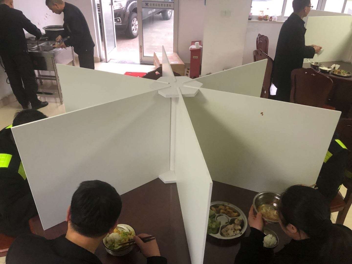 這是疫情期間,為了員工的安全健康,讓員工吃上安心餐,該所對(duì)餐桌進(jìn)行布局,將餐桌用塑料擋板隔成六個(gè)區(qū)域,員工在每個(gè)區(qū)域內(nèi)用餐,這樣可以避免就餐說話,減少相互間的交流。這是該所做好疫情防護(hù)的一項(xiàng)新舉措。