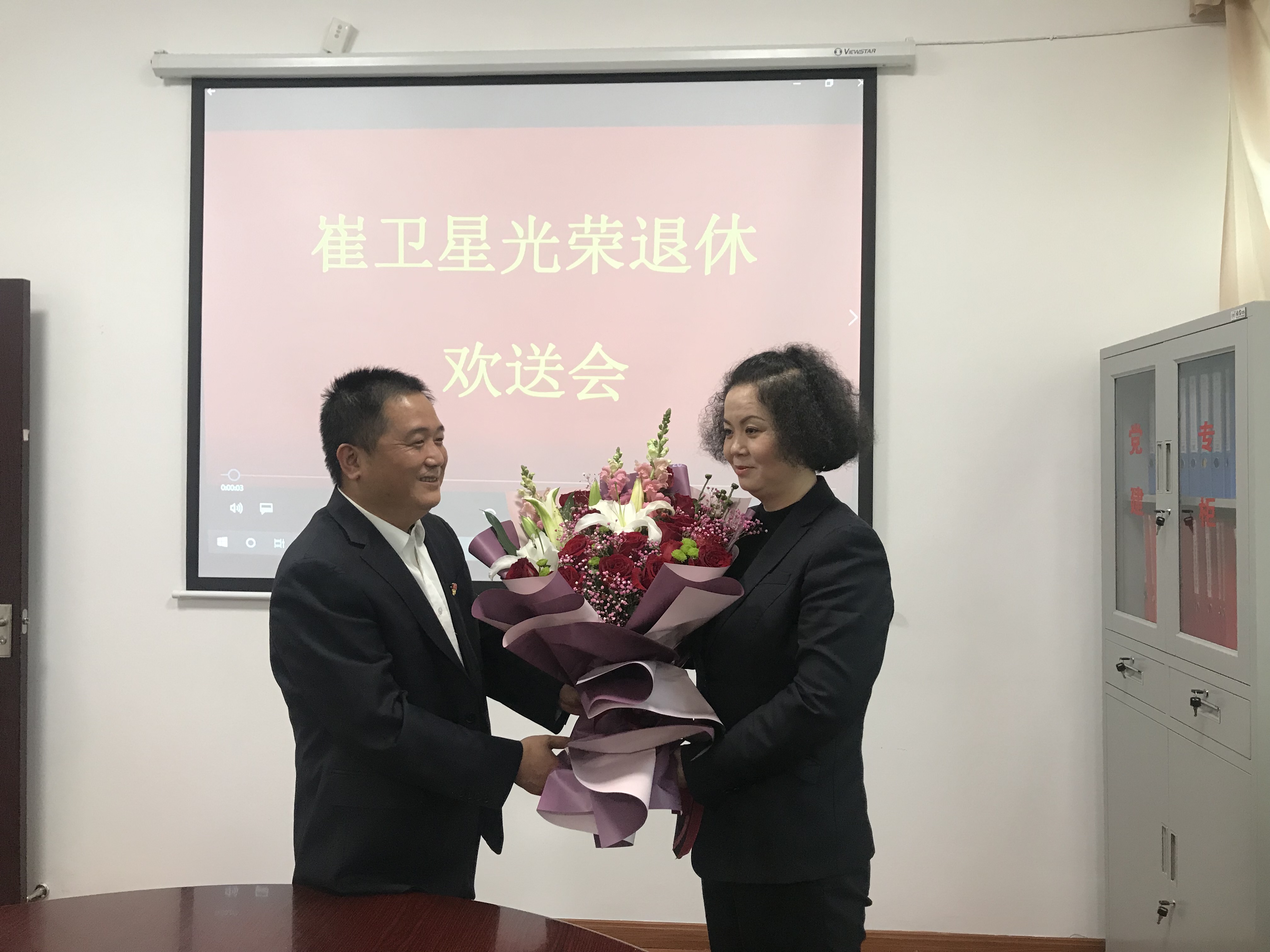 圖為所長王益民為退休員工送上鮮花 “看,這張照片是十多年前的,那時候是長發,現在剪短了。” “這張是正規化整治時疊被子的照片。” “這張是我們三八活動班組的合影照。” 歡送會上,看著屏幕上播放的一張張照片,同班組的員工們紛紛暢所欲言,大家共同回憶一起奮斗、工作游玩的快樂時光,都感慨時間過得太快了,仿佛這些事情就發生在昨天。 崔衛星激動地表達了對公司的熱愛和對公司美好前景的祝愿,對在一起工作的同事們依依不舍。所領導班子對她十多年來堅守工作崗位,兢兢業業、默默為臺州高速奉獻的精神表示充分的肯定與感謝,她的工作態度值得每一位員工去學習,同時祝愿她退休后的生活更加豐富多彩,希望她以后常回家看看。