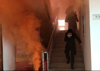 圖為逃生現場 在課堂上,陳教員通過近期火災事故案例分析,生動地講解了遇到突發性火災事故時的應急處理措施和如何做好高樓逃生自防自救及車輛的防火常識及如何應對車輛自燃和常見消防器材識別、使用及保養維護等消防安全知識。并結合單位實際情況,講述了收費所可能會遇到的幾種火災事故及應急措施。 隨后,溫嶺西收費所組織全體員工模擬親身體驗火災逃生演練。根據安排,以所長王小勇為組長,各所助、班長為成員的緊急疏散應急領導小組成立,明確逃生線路以及集合地點等演練內容。一切準備妥當后,員工分布在收費所管理房各處,模擬日常辦公。隨著煙霧彈的蔓延,逃生演練正式開始。首先由發現火情者撥打模擬火災報警電話,報告起火具體位置與火勢的大小,請求支援,同時報告所長,通知人員離開現場。參演人員立即用濕毛巾捂住口鼻,彎下身子盡量避開濃煙,進行緊急撤離。只見疏散引導員葉俊在三樓樓梯口指揮大家撤離,統計疏散人數,清查本層各寢室、洗漱間后撤離;疏散引導員陳豐平在二樓樓梯口指揮人員撤離,統計疏散人數,清查本層各辦公室、寢室、衛生間后撤離;疏散引導員李寧在所大門指揮人員撤離,統計疏散人數,清查本層會議室,寢室后撤離。撤離人員達到指定集合地點,由狄文琦清點核實人數,匯總后向所長匯報情況。所長王小勇確認全體人員安全撤離后,對本次演練進行點評,并宣布逃生緊急疏散演練結束。 通過本次演練,大家紛紛表示明白了火災預防措施,了解了常用的消防設備,懂得更多基本消防常識,并學會撲救初期火災、組織人員疏散、火災逃生自救等知識和技能,為今后的生活和工作多了一份安全保障。 陳瑩