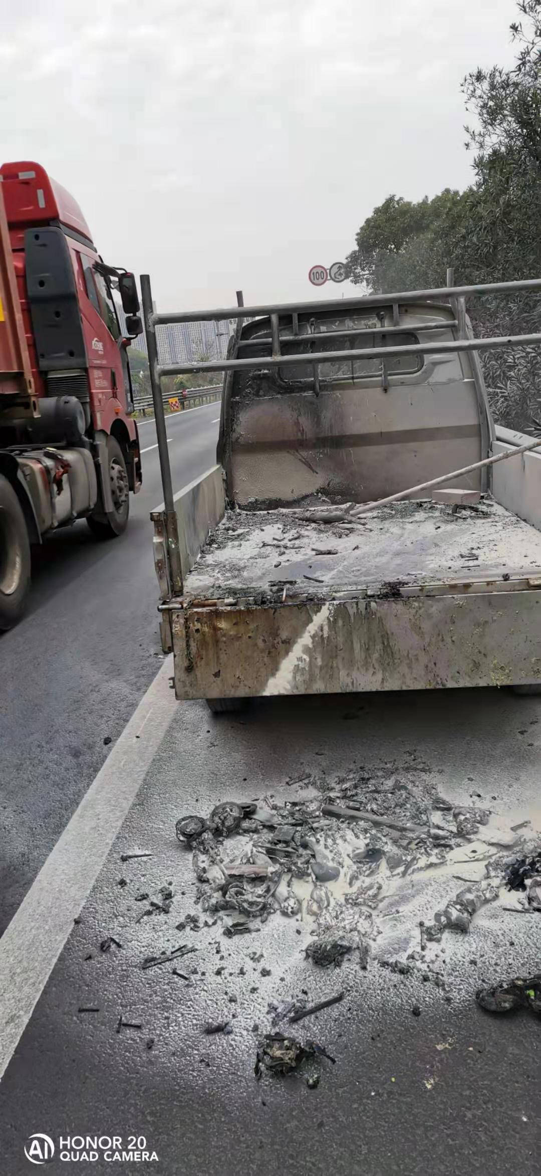 310日清晨7點(diǎn)46分,一輛五菱小貨車裝載物莫名起火驟停在黃土嶺隧道溫向出洞口100米左右的硬路肩,情況十分危急。