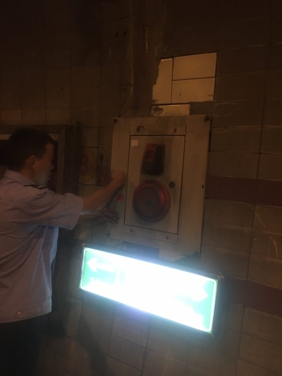 圖為張貼火災報警提示標語 此次隧道清洗工作主要針對隧道內的機電設施維修與保養(yǎng),清潔監(jiān)控和照明燈,修復故障攝像機;檢修消防設施,如火災報警采用點火測試、手動報警、緊急廣播和電話測試,以及檢查消防箱;隧道內指示標記檢查,如人通、汽通檢查保養(yǎng),隧道風機檢測,貼安全提示標志,修復提示燈等。 隊員們放棄休假,加班加點,借著隧道清洗一類施工的有利條件,把隧道內需報修的各種設備進行維修和保養(yǎng),保障了隧道內機電、消防設施的正常運行,排除安全隱患,為即將到來的中秋小長假提供明亮、安全的隧道行車環(huán)境。 陳智慧