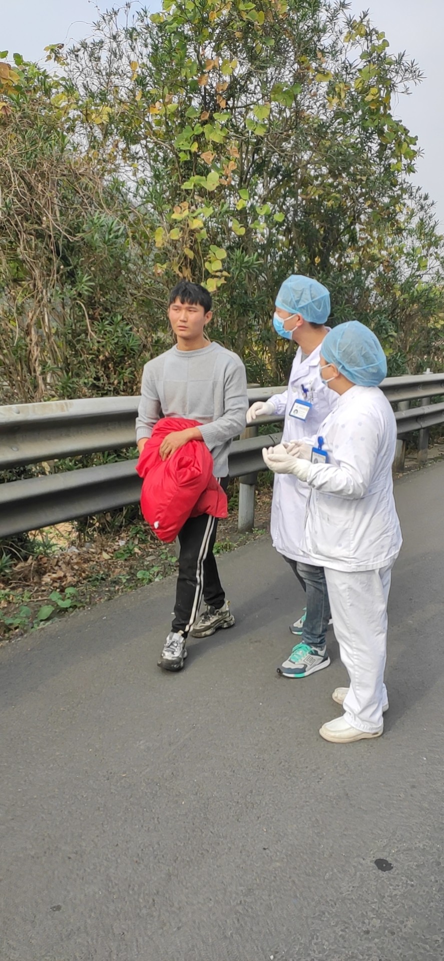 12月13日12:48中控發(fā)現(xiàn)溫向隧道入洞口600米處的情報板下濃煙滾滾,中控切換火災(zāi)圖像至監(jiān)控中心。并啟動火災(zāi)報警系統(tǒng),按下火災(zāi)按鈕,由于著火點(diǎn)距離隧道北廣場最近的消火栓有500百米,隊(duì)員們出警時從倉庫里取出數(shù)只滅火器,由于車輛未實(shí)施封道,車輛一直在事故車旁邊呼嘯而過,給現(xiàn)場救援帶來難度,王宇鵬、湯寧光、陳幸?guī)е鴾缁鹌黠w奔去滅火,巡邏車準(zhǔn)備駛?cè)胧鹿受嚭筮M(jìn)行封道預(yù)警。