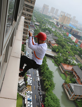 上圖為高空墜落逃生演練現場