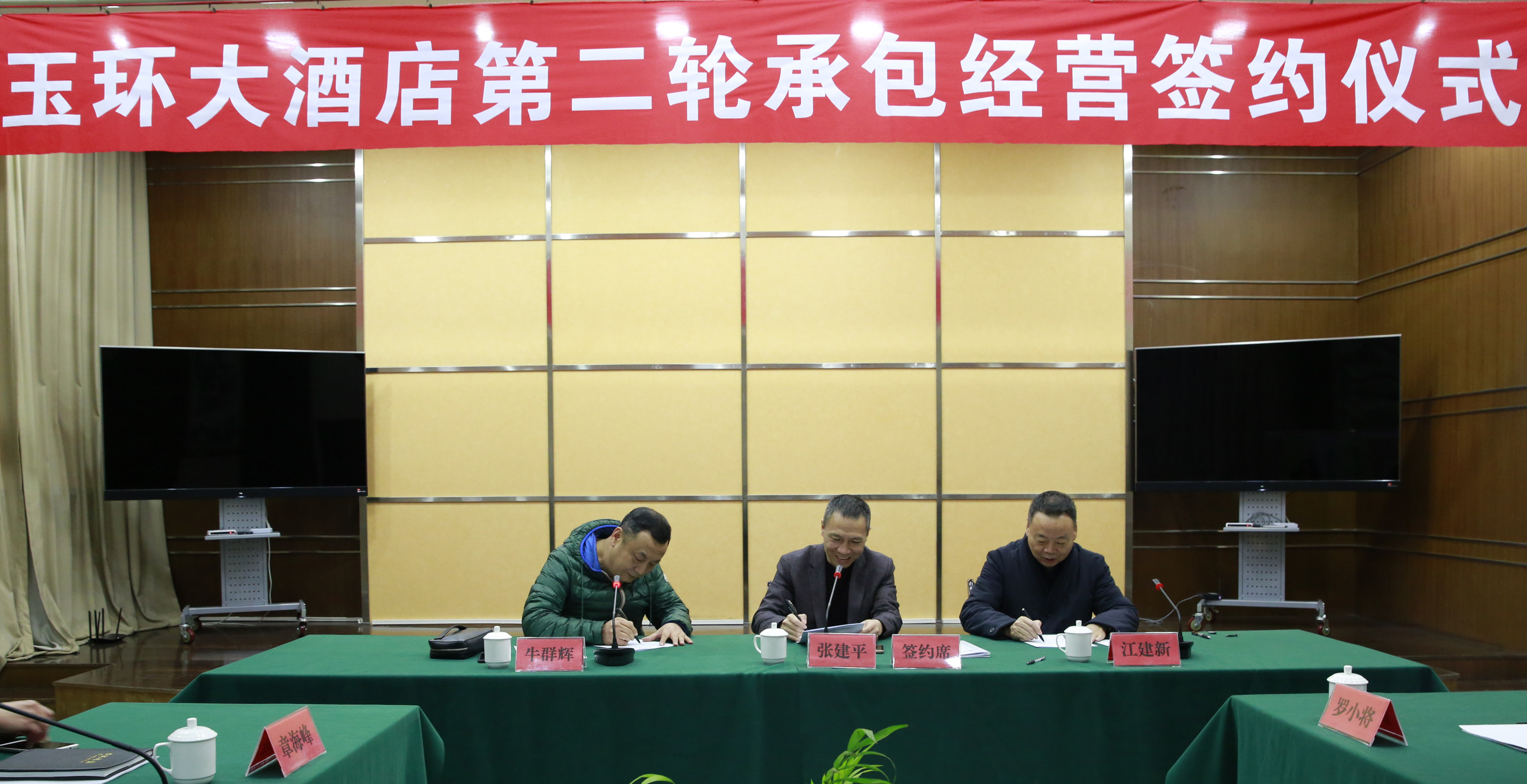 12月1日下午,集團副董事長、總經理張建平,玉環縣長城房產公司董事長江建新,集團下屬玉環大酒店董事長牛群輝,三方代表集聚于大樓26樓會議室,簽訂玉環大酒店新一輪承包經營協議,開啟酒店后續經營之門。集團經營班子和相關人員到場見證了這一重要時刻。