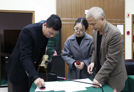 圖為協議蓋章現場 通過數次比對分析,集團最終選定玉環縣長城房產公司作為酒店的新一輪承包經營合作單位。 陳林偉