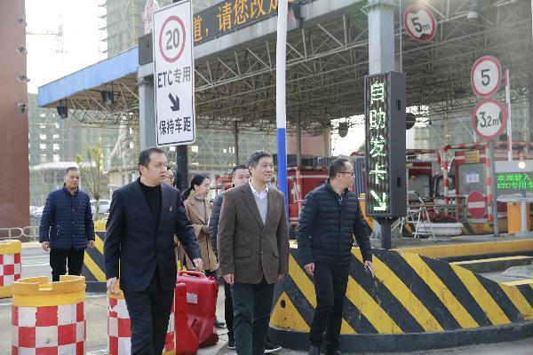 圖為市行政服務中心黨委副書記金偉一行在臺州收費站參觀學習