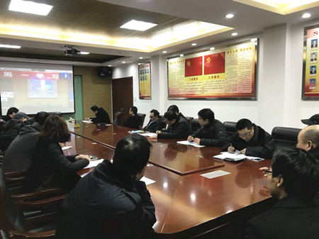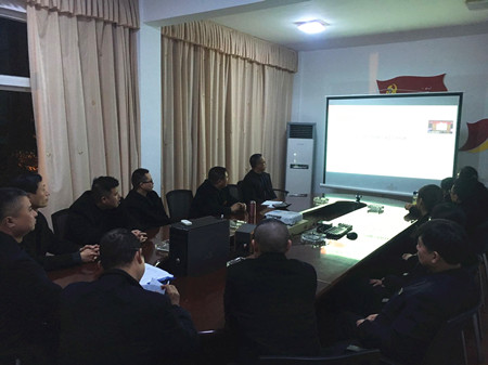 圖為集團(tuán)監(jiān)察室負(fù)責(zé)人傳達(dá)文件現(xiàn)場(chǎng)