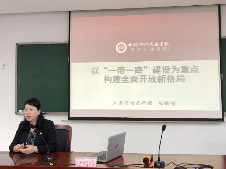 圖為省委黨校工商管理教研部副主任、教授陳愉瑜以《“一帶一路”與全面開放》為題授課