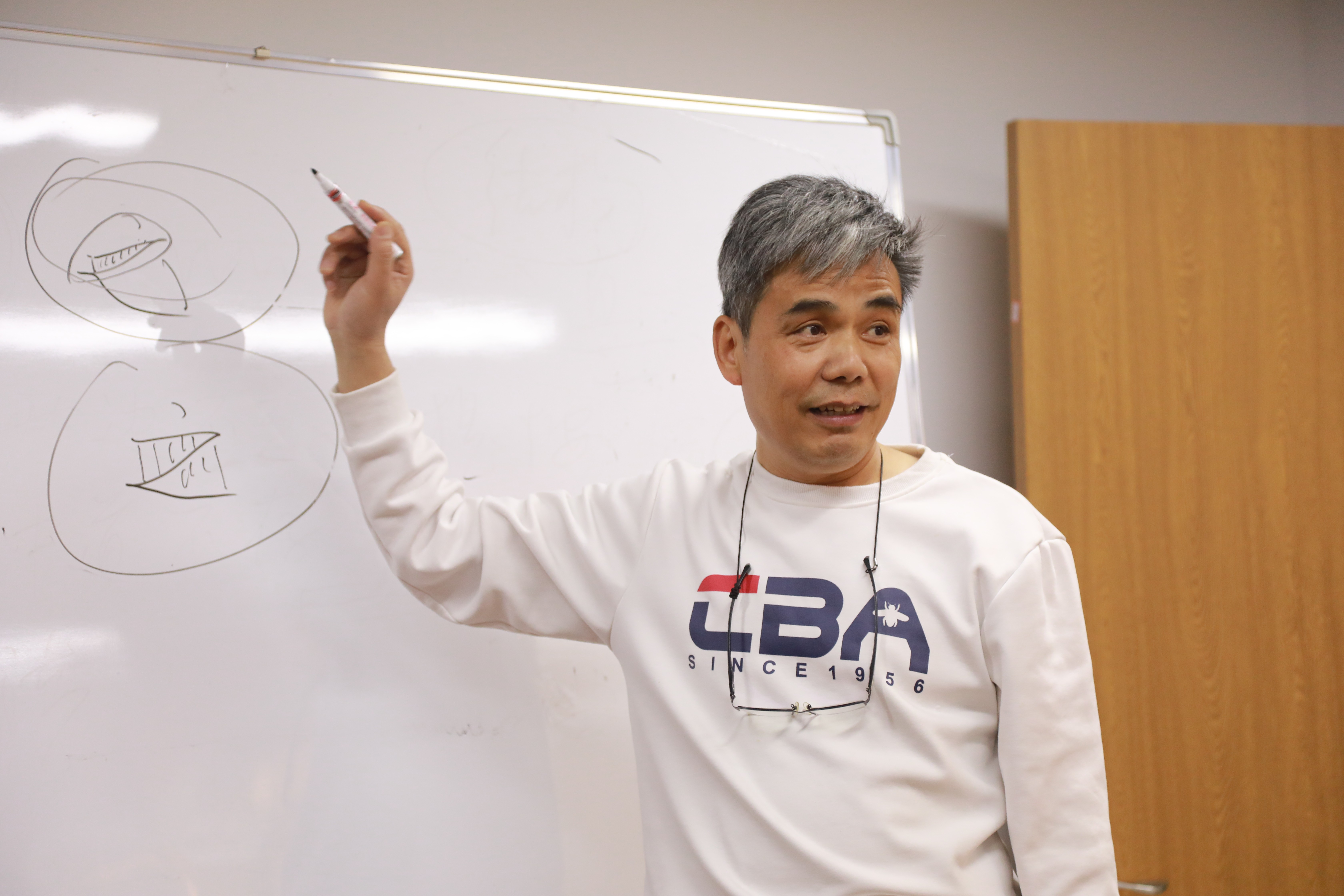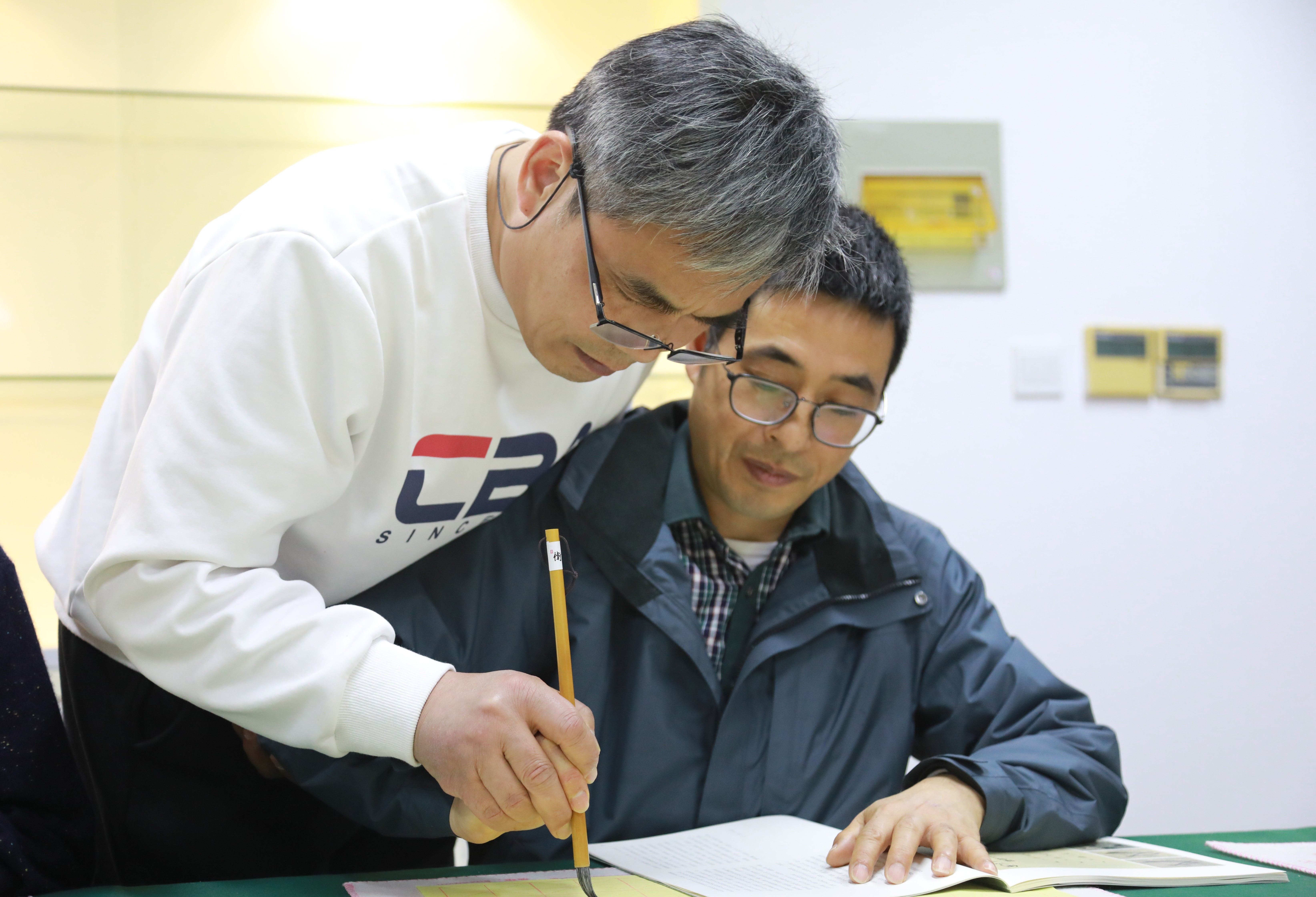 413日晚上,公司20樓書法培訓班上,書法興趣小組成員濟濟一堂,一個個正襟危坐,手執毛筆,在一張張書法訓練紙上認真地劃著線條,邊上專業書法培訓教師陳士春一個個輪流手把手教學,幫助大家感受毛筆的運力技巧、筆尖鋪毫要點及筆尖和紙之間的觸感。培訓現場氣氛濃厚,老師用心講課,既有理論解讀,又有實踐指導,學員們用心領悟,認真練習,現場呈現出教學相長的良好氛圍。