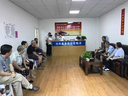 各收購點從一開始接收的第一筆股份轉讓,到現在大大小小股份協議書的簽訂,形形色色的股東都表示很支持和理解臺州高速股權收購工作,相繼前來轉讓股份。有的股東在轉了自己的股權后又立馬發動親戚好友前來辦理轉讓;有的近90歲高齡了還親自到收購點,耐心聽工作人員講解細節內容;有的稱多出的十多倍收益為意外之喜;有的甚至悔恨當年為何不多將資金投到臺州高速……可愛可敬的臺州高速股東們!