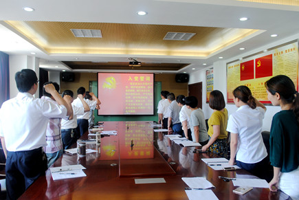 圖為全體黨員重溫入黨誓詞 會議第一項內容由該所黨支部書記王小勇帶領全體黨員重溫入黨誓詞,王小勇要求各位黨員牢記宗旨,做一名合格黨員。接下來全體黨員觀看《廖俊波:永遠的“樵夫”——一名共產黨員的樂與愛》視頻,學習市委書記王昌榮在全市領導干部會議上的講話精神等。大家結合高速精神大討論,對照先進典型和“四講四有”合格黨員標準,聯(lián)系個人思想和工作實際,認真開展批評與自我批評,查找不足,剖析原因,明確方向,并提出改進措施。 會后,王小勇強調,各位黨員要做到對黨忠誠,個人服從組織,樹立理想信念,強化黨員意識,做好本職工作。 鄭瑛芝