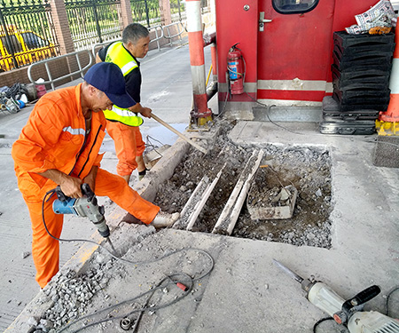 8月8日中午,省機電設(shè)計院施工人員率先對臺州收費所一號車道進行自助發(fā)卡機基礎(chǔ)施工工作。屆時,該所兩個進口車道都將安裝自助發(fā)卡機,整個工期預(yù)計需要一個月時間。