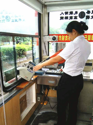 由于該收費站平時車流量大,收費金額比較多,使得驗鈔機長時間運轉(zhuǎn),積累了很多灰塵,在一定程度上影響了工作效率。當(dāng)天上午的所務(wù)會議便反映過此類問題,負(fù)責(zé)該項工作的狄文琦會后立馬帶上工具,輪流清理每個崗?fù)さ尿炩n機和打印機,將灰塵從桌面到驗鈔機里全面清除干凈。副班長張竟君從旁協(xié)助,用抹布掃尾,配合相當(dāng)默契,瞬間桌面提亮不少,驗鈔機工作效率也提高很多。