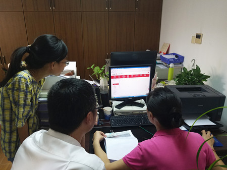 圖為經辦人員在銀行業務人員指導下進行實際操作