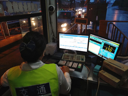 圖為高峰時期的ETC出口車道情況 為保暢通,負責ETC車道的工作人員要時刻盯著過往的車輛,對于ETC操作系統(tǒng)上顯示的誤闖車,他得馬上示意司機停車,用人工操作系統(tǒng)讀卡付費。遇ETC車輛可直接通過,不必停車取下OBU中的ETC卡再人工刷一遍,大大節(jié)省了ETC車輛在非正常情況下的通站時間。看著ETC車道源源不斷的車流,收費員小孫一邊揉著眼睛一邊說:“操作起來還蠻順手的,就是有的司機開著遠光燈過來,要第一時間辨別車牌號與電腦流水相不相符,眼睛被刺得直冒金星,很痛很吃力。” 在ETC車道給非ETC車輛增加一個臨時通道的大膽嘗試,一改以往誤闖車輛進入ETC車道后要么引導到旁邊人工車道收費,要么就是先手動放行,再將通行卡拿去人工車道作整車插入操作,不僅需要登記和旁站等手續(xù),又給后方車輛造成不少的等待時間。而現(xiàn)在的一個出口,兩個操作系統(tǒng),既能在第一時間讓誤闖車輛順利通行,又能保證ETC車輛不用人工刷卡就能正常地快速通過。在飽和狀態(tài)下,其通過率較之前提升12%,通行效率顯著提升,有效減少了內廣場擁堵,減輕主線分流壓力。 鄭瑛芝