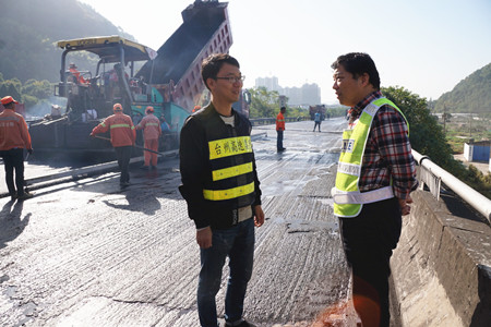 “路面銑刨有時會出現銑刨不完全存在夾層的現象,如不清理干凈則會嚴重影響攤鋪后路面的平整度。”楊金梁介紹道,所以攤鋪時每道工序,他都時刻緊盯,確保攤鋪的路面不存在任何瑕疵。
