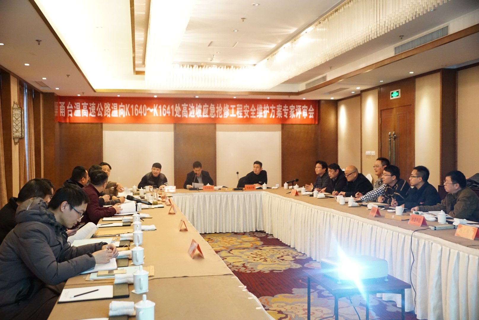 甬臺(tái)溫高速公路K1640-K1641處高邊坡應(yīng)急搶險(xiǎn)工程 安全維護(hù)方案評(píng)審會(huì)召開(kāi) 3月6日下午,集團(tuán)組織召開(kāi)甬臺(tái)溫高速公路K1640~K1641處高邊坡應(yīng)急搶險(xiǎn)工程安全維護(hù)方案評(píng)審會(huì)。集團(tuán)總工程師江輝主持會(huì)議。臺(tái)州市公路局、高速交警、施工、監(jiān)理、設(shè)計(jì)、封道公司、隧道所、安保部等單位、部門(mén)和特邀專(zhuān)家參加會(huì)議。