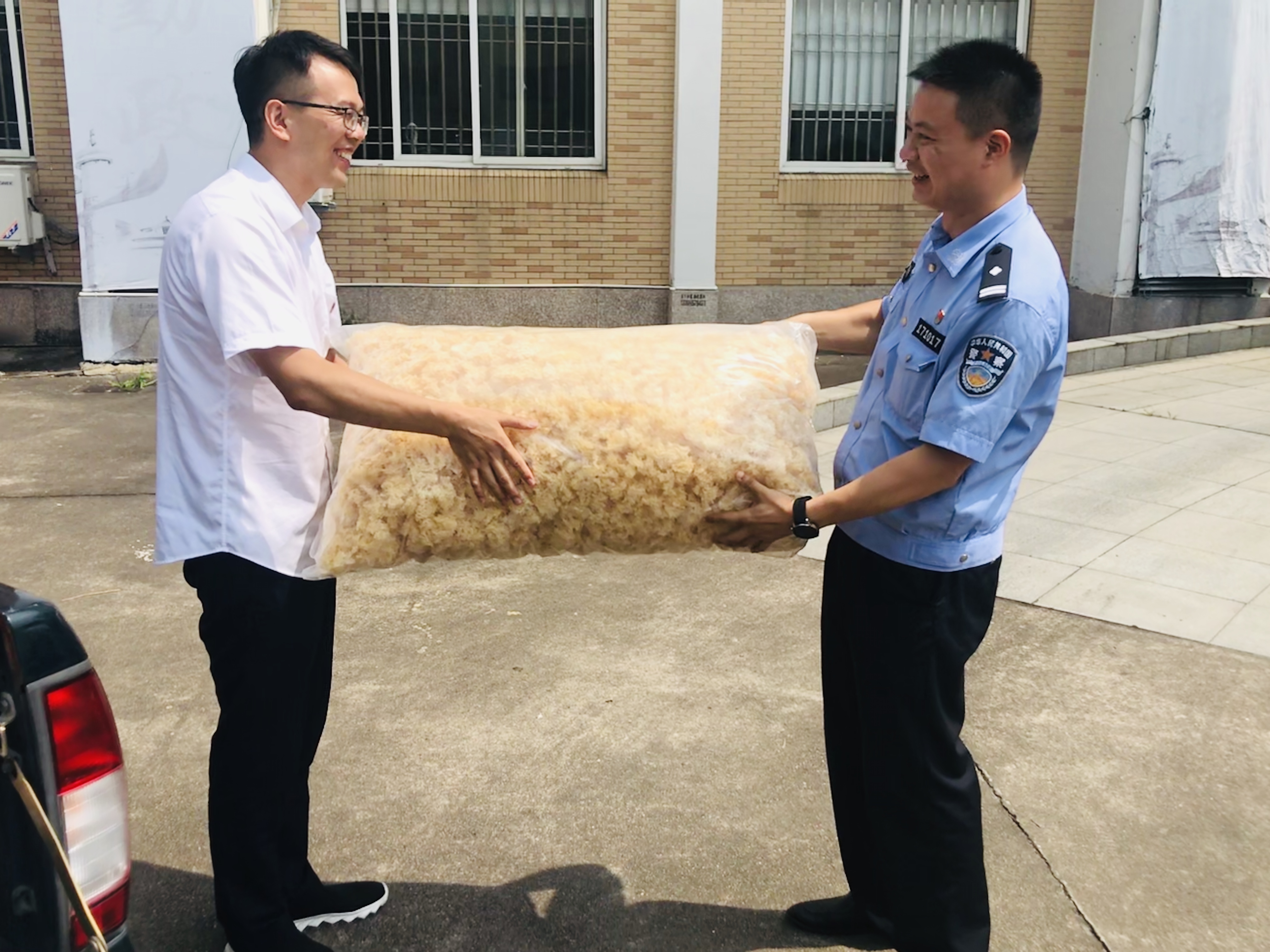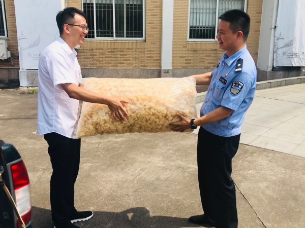 圖為送清涼問候現場 現場,孫明偉一行親切問候在炎炎夏日下辛苦執勤的民警,給他們送去白木耳、綠豆、白糖、礦泉水等解暑慰問品,并對他們在維護收費站口道路安全暢通、司乘的安全出行中,所付出的辛勤勞動表示感謝,對他們飽含著愛心和奉獻、肩負著使命和責任、恪盡職守地為大家的出行保駕護航表示感激。同時表示,收費所也要將這種精神體現到收費服務工作中,加強收費站與站區所在地單位之間的溝通與協作,與地方派出所全力配合、協同作戰,履職盡責,共同確保高速公路安全暢通。 陳瑩