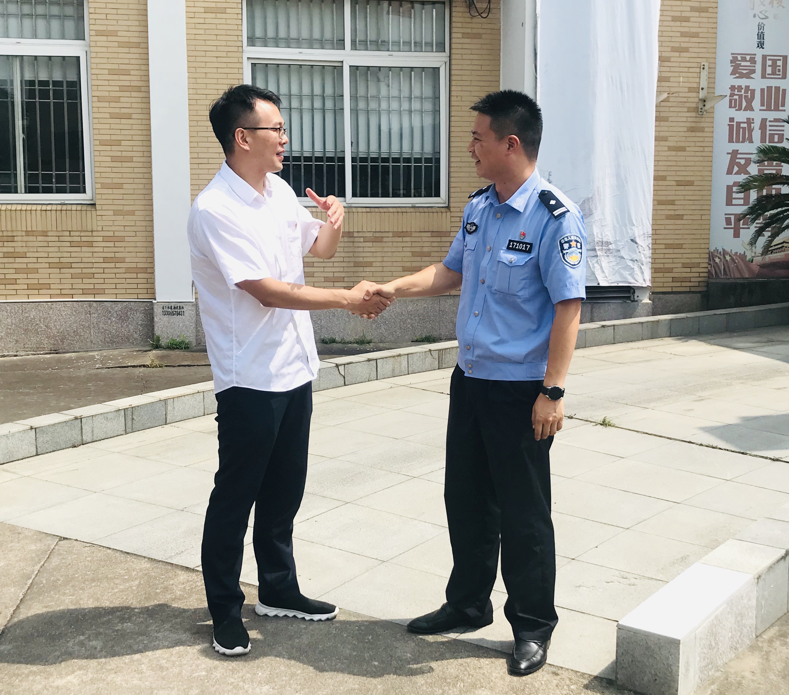 炎炎夏日送清涼 警民合作一家親 7月15日上午,臨海南收費所所長孫明偉帶隊到沿江派出所送清涼,向堅守一線的民警們送上誠摯的關懷,感謝他們對臨海南高速公路所做的貢獻。