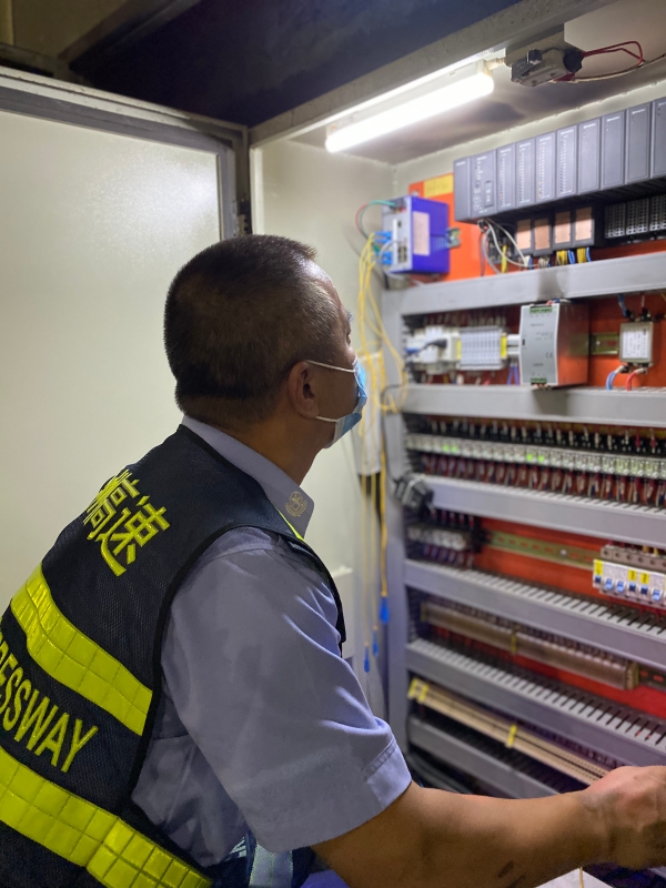 雖然隧道內(nèi)沒有烈日的灼燒,但日均4萬的車流,加上尾氣排放,導(dǎo)致隧道內(nèi)的氣溫遠高于室外。當室外37°C時,整個隧道里宛如一個蒸籠。盡管如此,廣場上、電纜溝上隨時都有執(zhí)勤隊員忙碌的身影。他們來回徒步穿梭于隧道,檢查指示燈、消防設(shè)備箱、緊急電話、火災(zāi)報警等設(shè)施設(shè)備,排查各類安全隱患,修復(fù)受損設(shè)備,處理各種突發(fā)情況。一趟下來臉和胳膊被熏得黝黑,口罩、衣服濕了又干、干了又濕,盡管工作量大、強度高,他們從不喊苦說累。