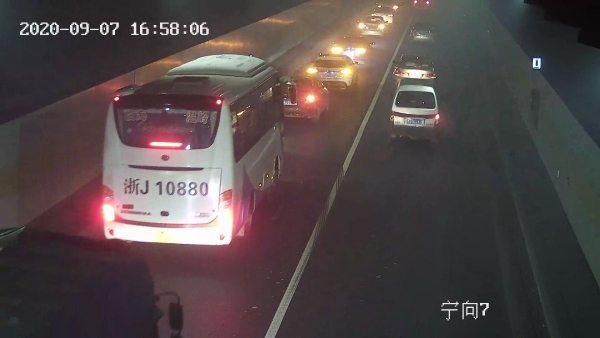 車(chē)子剛進(jìn)入隧道,火眼金睛的中控員徐海源立即察覺(jué),鎖定該畫(huà)面,經(jīng)過(guò)仔細(xì)辨認(rèn),該車(chē)沒(méi)有火光源,可能是車(chē)輛故障導(dǎo)致的。由于貨車(chē)不停地冒出濃煙,散發(fā)的濃煙彌漫在整個(gè)隧道里,造成隧道內(nèi)的車(chē)輛視線(xiàn)不清,人員呼吸困難,后方途經(jīng)車(chē)輛紛紛打開(kāi)雙閃燈,或緩行、或停車(chē)、或避讓?zhuān)粫r(shí)間,交通秩序混亂,大量的車(chē)輛滯留在隧道里,而后方來(lái)車(chē)越來(lái)越多,情況越來(lái)越緊急。中控員見(jiàn)狀,第一時(shí)間向監(jiān)控中心匯報(bào)情況,監(jiān)控中心要求密切關(guān)注該輛車(chē)的行駛情況,同時(shí),把該情況報(bào)告給執(zhí)勤隊(duì)長(zhǎng)蔡星,他要求中控員打開(kāi)寧向排風(fēng)扇,正向排風(fēng),疏散濃煙,同時(shí)做好應(yīng)急準(zhǔn)備工作。