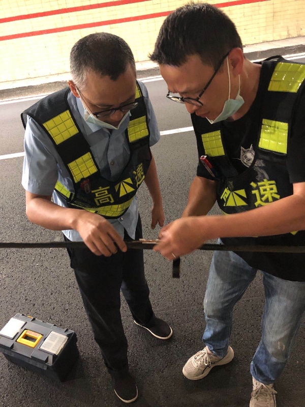車流如潮的現(xiàn)場給管理所的保暢帶來了挑戰(zhàn)。面對(duì)雙節(jié)高峰,執(zhí)勤隊(duì)爭分奪秒分組進(jìn)行有封閉主車道擺放安全防護(hù);提醒來往車輛保持有效車距;查找受損電纜修復(fù);高空作業(yè)包扎脫落電纜。那一刻,他們手頂橋架背影,彎腰查線時(shí)的動(dòng)作,無疑是高速最美麗的風(fēng)景。最后經(jīng)過三個(gè)小時(shí)的搶修,被拉掉一邊的橋架及電纜終于重新固定恢復(fù)原位。