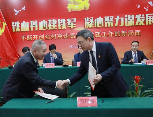 會上,臺州收費所黨支部、臺州南收費所黨支部、大溪嶺隧道所黨支部上臺作黨建工作經驗典型發言。集團領導陳文波與各支部書記簽訂《2019年度黨建工作責任書》、《黨風廉政建設責任書》,各中層以上干部簽訂了《廉潔履職承諾書》