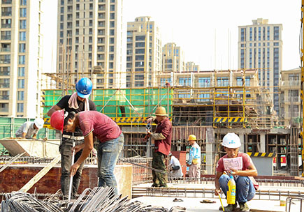上圖為工人冒著高溫在文鼎苑工地上忙碌作業